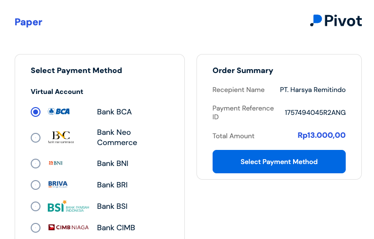 Select any bank then click 'Select Payment Method' button