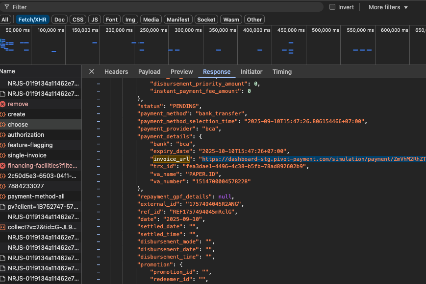 API request. In the response, look fordata.payment_details.invoice_url
